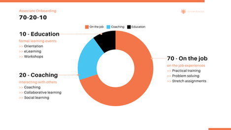 The program consists of a 90-day guided learning path with on the job training and support from direct managers and onboarding buddies. Associates complete the general organizational orientation as well as business unit orientation and self-paced learning modules on key processes, functions and applications. From there, the emphasis shifts to on-the-job training and coaching. Managers and onboarding buddies also receive training, checklists and supplemental coaching to guide and assist them as they onboard the new hire.